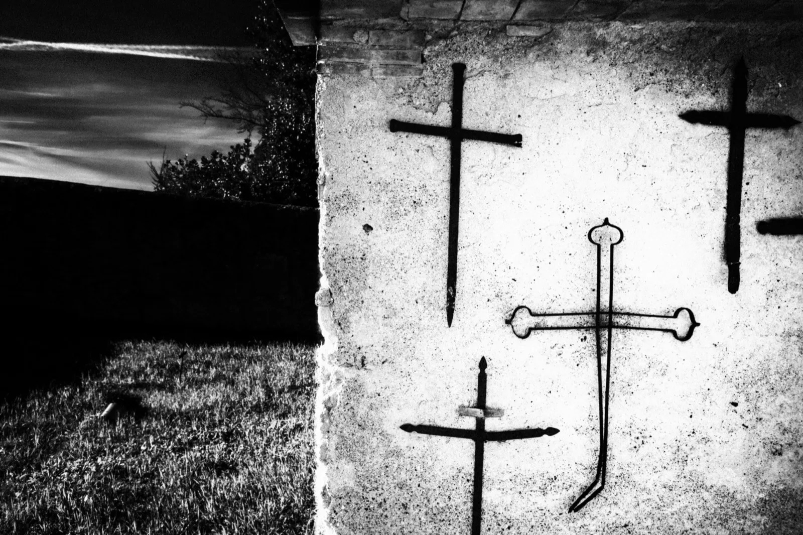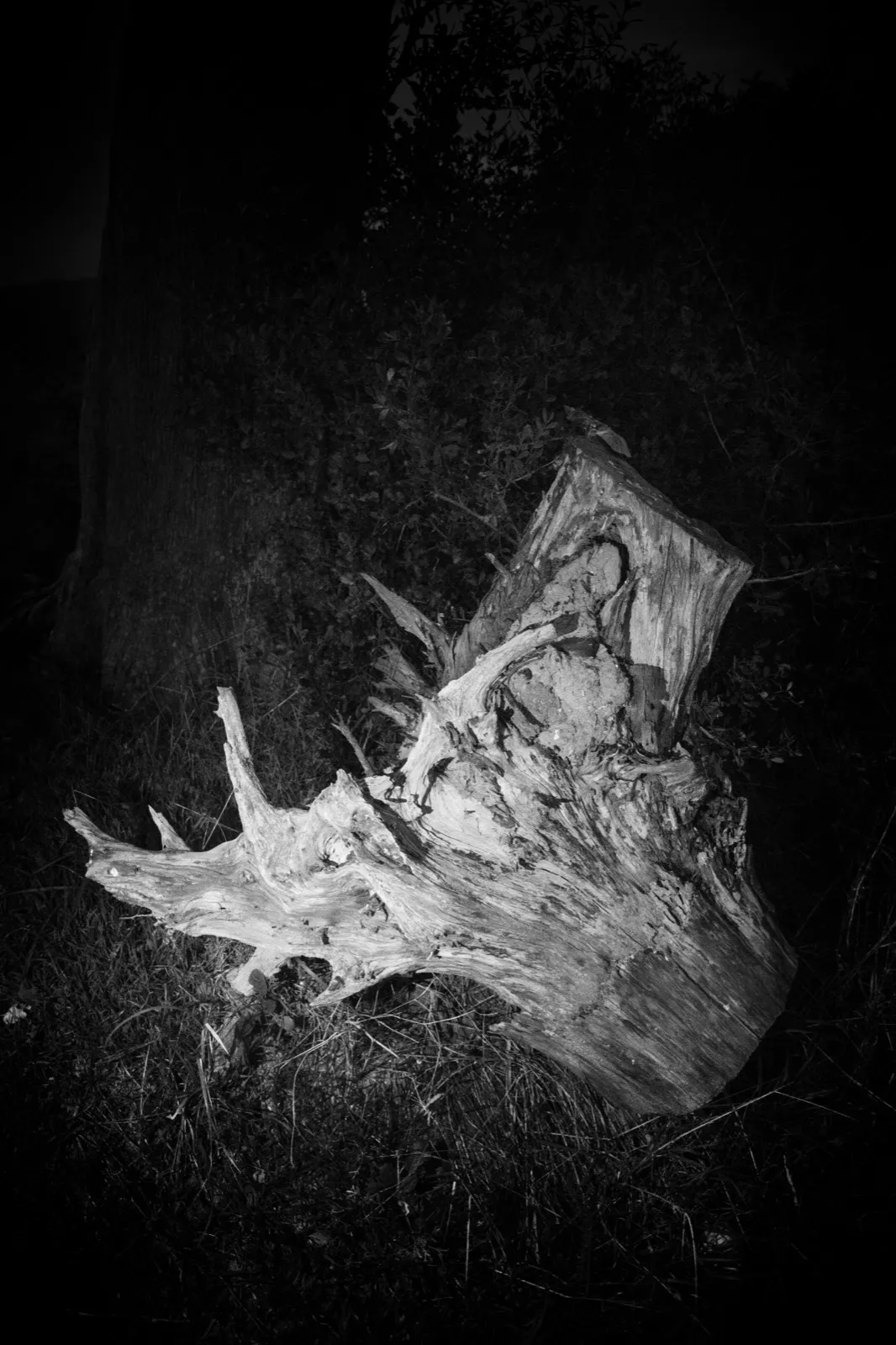 “Butta via il ciuccio” nasce da una visione e dal ritorno alla campagna. Notte, i fari dell’auto danzano in virtù delle irregolarità della strada, illuminano un ceppo, forse un profilo, che rimesta negli anditi più periferici della memoria e suscita domande sulla vita, sulla morte, sulla fotografia. Non siamo in grado di pensare la morte, il vuoto, l’assenza, il Nulla, ma le loro innumerevoli metafore. Fotografare può evocare il loro cono d’ombra, può dare contorni all’indicibile, a ciò che si nega alla conoscenza. Racconta il rinfrangersi delle immagini come un al di qua del significato, un principio del dire che non si consegna al senso. Racconta i rumori e le ferite, l’attesa e lo smarrimento, tenta di dare contorni all’impensato.